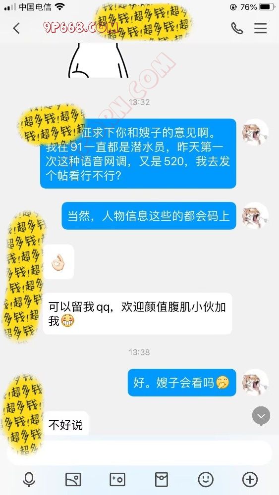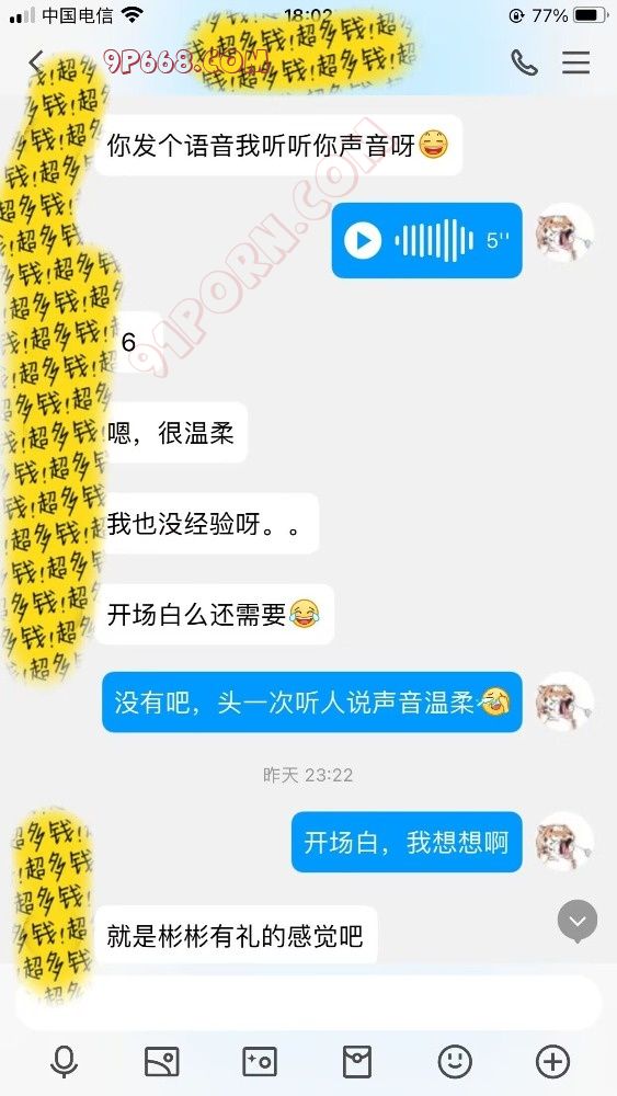 好了。回归话题。5.19日晚深夜11点有余,我就简称他为T哥吧。T哥加了我的企业,问我有没有玩过语音调教,并发来了和嫂子的两张靓照。有一说一,男帅女靓,嫂子一看就是温文儒雅,文质彬彬的类型。